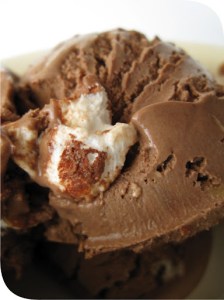 I’ve gotten the mothership to start saving egg yolks for me in preparation for the next batch of ice cream. I had tipped of T that I had a pound of Trader Joe chocolate up for use – it turns out that I had purchased the right ‘colour’ of packaging, but it contained almonds as well! (Dark chocolate with almonds, I wanted sans.) She offered to take the goods off my hands in the hopes of making cookies from them (as chips), but unfortunately, I beat her to it. I swear, I really was going to give her the chocolate, but then the realization that I could make Rocky Road ice cream hit! It’s hard to find, no? I remember as a child – Rocky Road was as prevalent as vanilla, now…not so much.