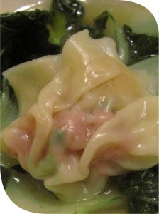 I had just come home from a long day at work – an end-of-day meeting had run long and I didn’t even have time to turn on the TV when the Mothership was a-knockin’. She seemed disappointed that our won ton dinner night was off to a late start, but hey – what am I going to do? I quickly whipped up a filling, put the chicken stock on the hob, and away we went!