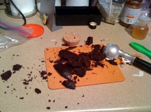 I made ice cream sandwiches with leftover cake tops and ice cream.