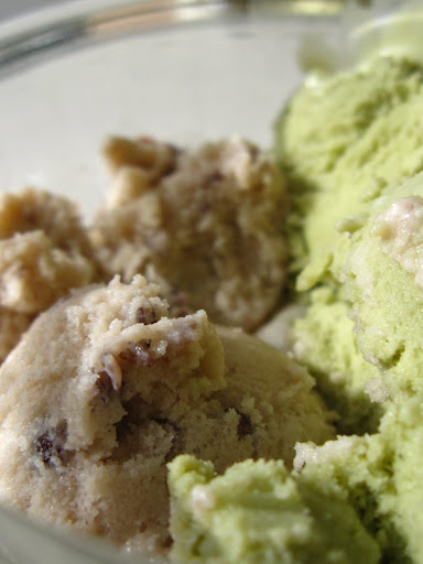 I think I’ve posted a recipe for the base that I use for ice cream. Same thing here – whisk in enough matcha powder to taste! Here’s the thing about matcha powder, and green tea in general. It needs a lot of whisking. A LOT. That’s why they have those fancy bamboo whisks! I get it now! No matter how hard I tried, there were always flecks of powder floating around. Multiple passes through a sieve didn’t do the trick either, but when the ice cream churns the flecks just…fade. It’s magical.