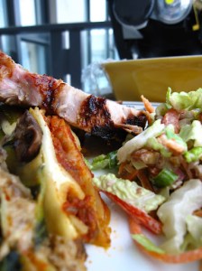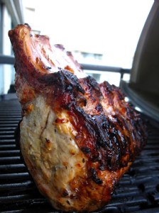 Take one pork loin (ribs optional) – take a paring knife and trim the fat. Also, while you’ve got the knife in your hand, pierce the loin liberally. Create a wet rub and lather liberally, remember to jam the rub into those knife crevasses as well!