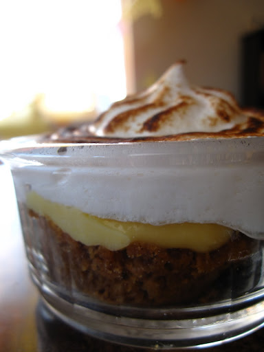 Anyway, as I mentioned in my last post – I had to salvage together a dessert for dinner at T&J’s – I smushed the graham cracker crusts into glass ramekins, topped them with some lemon curd and meringue and torched away! I saved the meringue making for T&J’s as they have a gorgeous onyx stand mixer themselves and I was dying to fondle another sexy kitchen gadget (don’t worry Daisy, I still love you…but I wanted something with…MORE POWER!). The T&J are also my torch buddies – they were there when I opened my new blowtorch and T was the one who bravely filled it with butane. The torch actually needed a butane top-up actually and she was more than willing to put on a repeat performance!