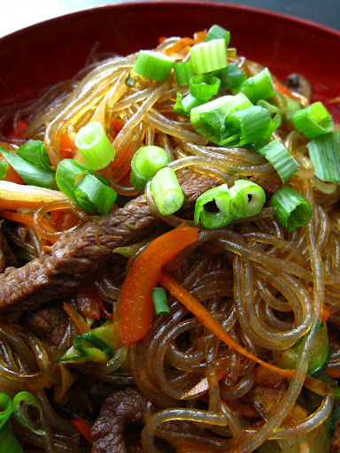 I love making japchae, although I find you have to fry the noodles really fast as they get super sticky!