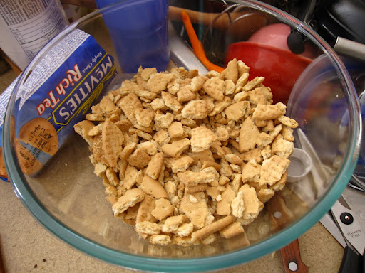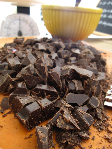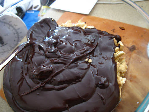 Basically – the recipe is to prepare a chocolate ganache and then pour it over crumbled up cookies and then press it into a mold. Chill overnight and then cover with chocolate. Seriously – that’s it! No baking required. Heck, only one bowl required really. The recipe for the ganache differs from source to source, but basically it is chocolate + cream + extra additives (incl butter, honey, coffee, liqueur, eggs, vanilla).