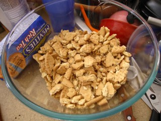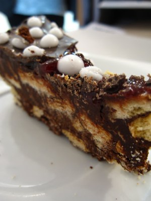 Prince William/Duke of Cambridge specifically requested this as his groom’s cake – which is really an excuse to have two cakes at your wedding! I don’t blame him at all, when the “official” cake was a fruitcake monstrosity (tasty, I’m sure, but not what I would’ve liked at my wedding) – so why not have something a bit more decadent to nibble on? Immediately I set about trying to replicate this cake – and when I found some recipes, I was surprised and a bit disappointed that it was not more…complex. Yet I give him kudos for picking a cake that is a favourite of his and not at all traditional ‘elegant’ choice. The North American version would be an icebox cake – cookies layered with icing and then chilled, both to solidify the sugary mass but to soften up the cookies as to give a more cake-like texture. When I was explaining the process to my coworkers, I describe the cake as being “a chocolate brick” – and indeed it was, a heavy, dense, and rich chocolate treat.