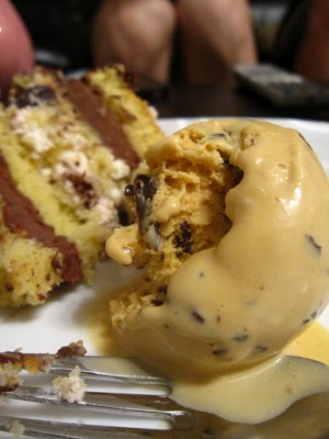 I recently celebrated a friend’s birthday and after a terrific dinner at a local izakaya joint, we went back to mine for cake & ice cream. The cake was a multilayered fruit&cream&ganache tower, finished off with a scoop of butter caramel ice cream swirled with dark chocolate. Although the cake was awesome, I was really excited to see my friends’ faces when they sank their tongues into the ice cream.