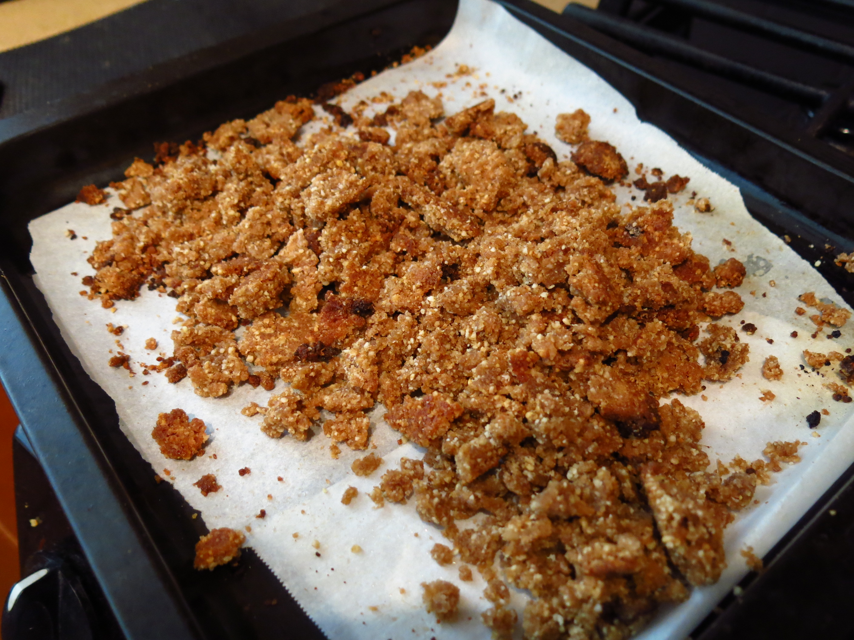 As you can see here, the dough is struggling to absorb the butter. Eventually it does happen and the dough is quite lovely. The dough was actually pretty large, so I only used half. The other I will save for a special rainy day. I decided to bake it in a pie plate and to add a different layer of flavour, I made an applesauce to spread on top (under the streusel).