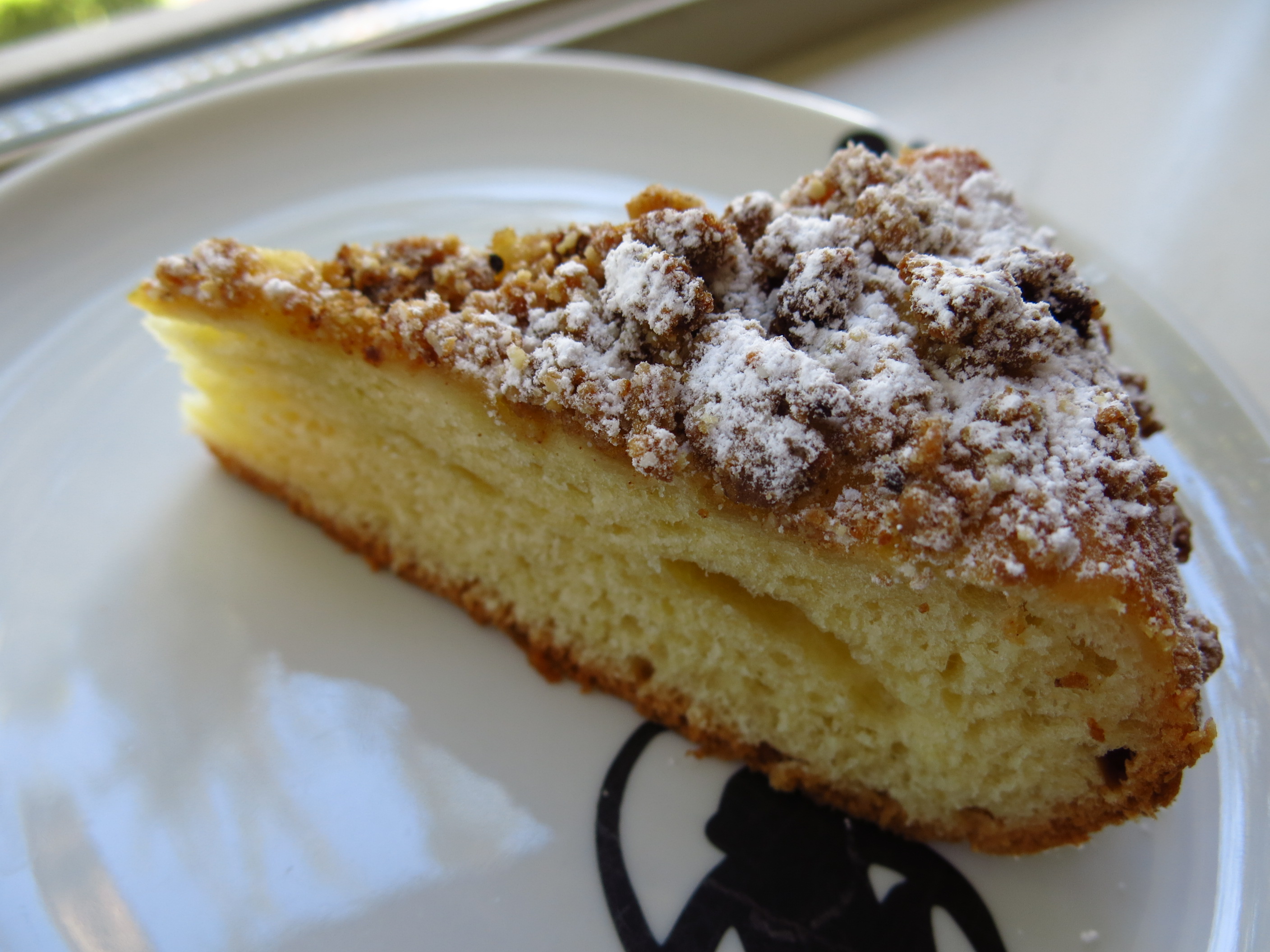 Lovely contrast with the blue of the plate – and the brioche dusted with icing sugar.