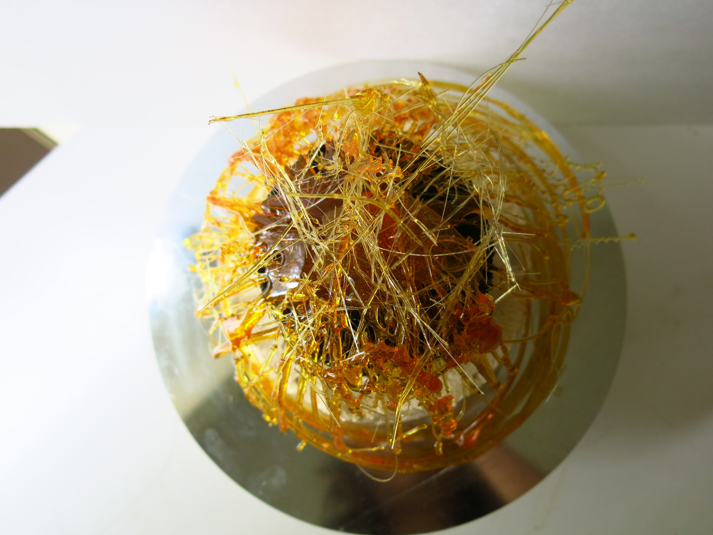 Here are the caramel “molds”. I was thinking I wanted the cake to be in a caramel cage with circular elements.